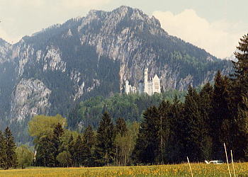 いよいよロマンチック街道の終着点フュッセンです。ここには、山の中腹に夢のような真っ白いお城がそびえています。「ノイシュヴァンシュタイン城」です。この幻想的とも言える風景は、ドイツで最も美しい城として、多くの観光客でにぎわっています。これでロマンチック街道は終着となりますが、せっかくですから、続く街道をオーストリアまで行ってみましょう。 |