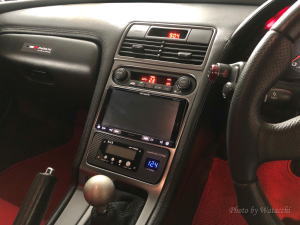 これで、エアコン吹出口とセンターコンソールパネルの色味が同じになり、純正然とした感じで、なかなか良い雰囲気になった(微笑)。 |