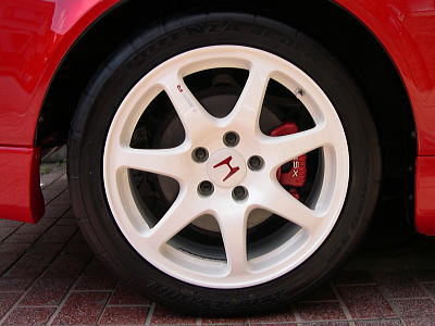 後期NSX-R(2002年迄)の純正ホイールを装着しました。フロントが215/45 R16