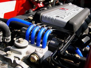 エンジン周りのエアーパイプ類をシリコンホースに交換しました。何色にしようか迷いましたが、結局はご覧の通りの色に落ち着きました。