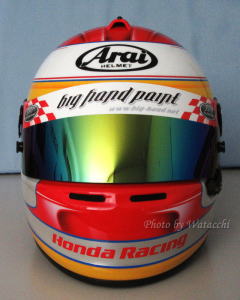 アライの四輪競技用ヘルメットGP-6Sをベースに、オリジナルペイントを施してみました。う〜ん、あまりの良い出来映えに、もったいなくて使えないかも?(苦笑)