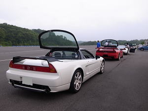 ほぼ1年ぶりのもてぎです(汗)。プライベートなドライビングスクールでもてぎに行ってきた。朝、家を出る時は小雨がパラついていたので、ウェットコンディションでの走行を覚悟する。梅雨真っ直中なので、元々、快晴は期待していませんが・・・(笑)。