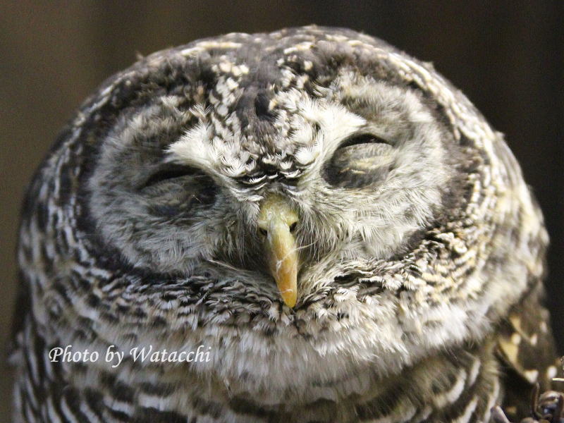 左のフクロウ、笑っているみたいでしょ?(笑) 実はウトウトとうたた寝しているんですけど・・・ね。 |