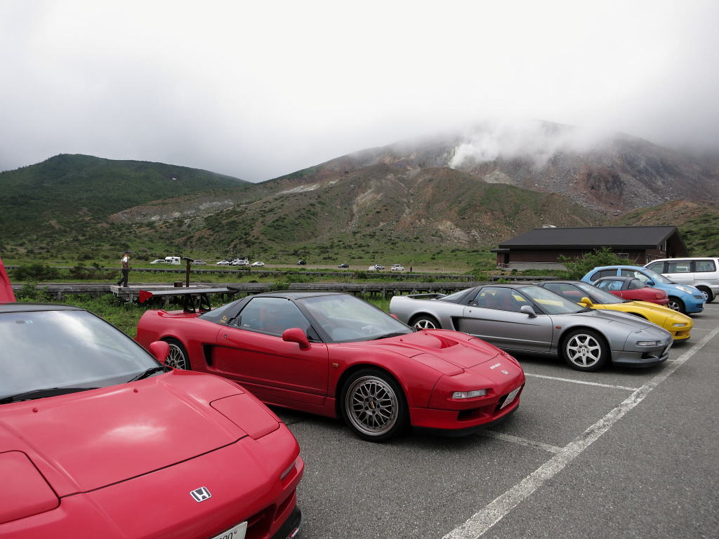 案の定、8時前に上河内SAに到着してしまう。でも、既に遠方から参加のNさんが来ていた。 朝食をとり、関東組の皆さんx4台と合流し、5台で次の待ち合わせ場所である磐梯山SAに向かう。 ここで、他のメンバーと合流し、9台で磐梯山ゴールドラインを駆け上がる。 皆さん、軽快なこと・・・(微笑)、後をついていくのに必至です(大汗)。 | |  | | 磐梯山ゴールドアイン | |