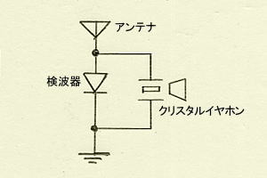 さて、この章の本題に入りますが、鉱石(クリスタル)ラジオって何でしょう。一言で言うとラジオの原点、即ち、この世に初めて登場したラジオが鉱石ラジオです。今では性能の良い様々なラジオが出来ていますが、今でも動作の基本原理は鉱石ラジオと同じです。ここから先は少し専門的になってしまいますが、我慢して聞いて下さい。